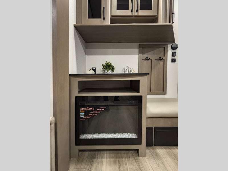 Each fifth wheel has 90-degre turning radius capabilities which allows you to be comfortable driving in town and parking into your campsite. Some construction and Arctic 4-Seasons Protection package features include a one-piece TPO roof membrane, a heated and enclosed underbelly with circulating heat, 12V heat pads on the holding tanks, and a heated pass-through storage area so you can travel and enjoy any climate. The interior offers large panoramic slide room windows for great views, premium Congoleum flooring for durability, and an On Demand water heater.